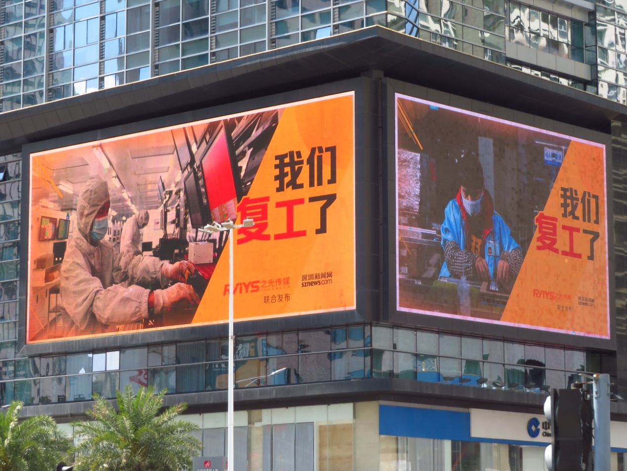 2月以來,深圳新聞網(wǎng)聯(lián)合之光傳媒在17塊戶外LED大屏廣告上刊登了多組不同主題的公益廣告,包括“加油中國”、“向逆行者致敬”、“瞞報(bào)就是犯罪”系列警示標(biāo)語、“我們復(fù)工了”等。這些戶外大屏遍布全市各主干道和核心商圈,總面積達(dá)6000㎡,市場價(jià)值約1200萬元。