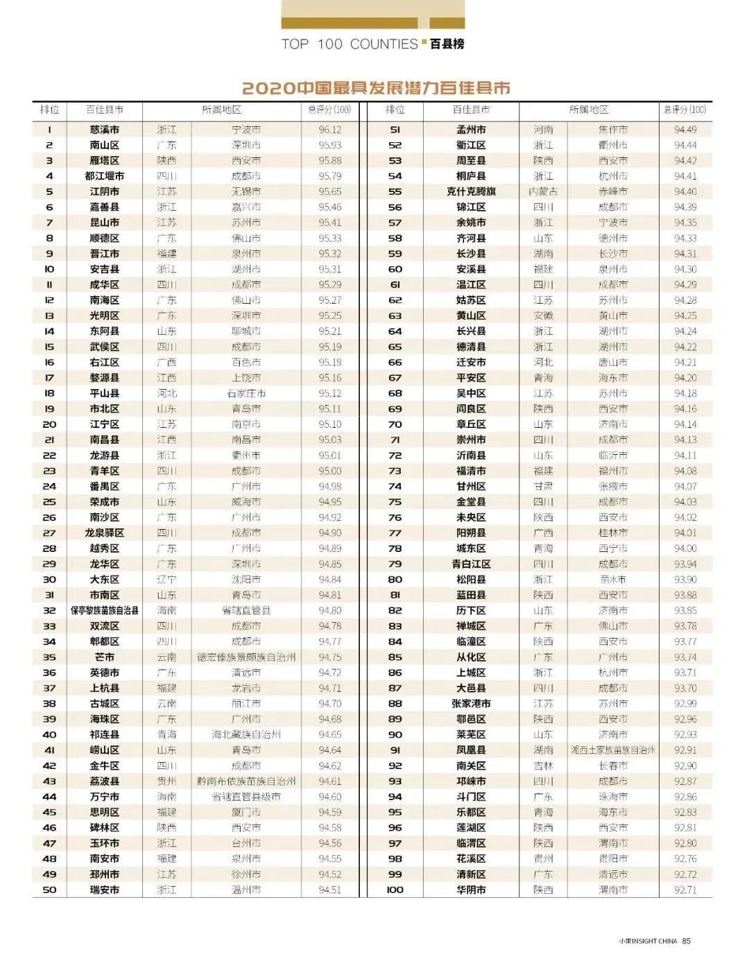 原標題:2020中國最具發(fā)展?jié)摿Π偌芽h市發(fā)布南山全國第二,光明及龍華也上榜