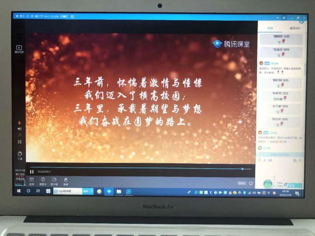 2月28日,橫崗高級中學(xué)2020屆高三全體師生利用騰訊課堂召開以班級為單位的網(wǎng)上“高考百日誓師大會”。各班精心制作PPT,提前錄制老師、家長、同學(xué)的祝福小視頻,科任老師、學(xué)生家長、學(xué)生代表連麥鼓勵,同學(xué)們最后對著電子屏幕高喊百日誓詞同時下定決心,為自己的夢想,刻苦拼搏,永不言悔。網(wǎng)上“百日誓師”豪情滿懷、溫情涌動、感人至深。