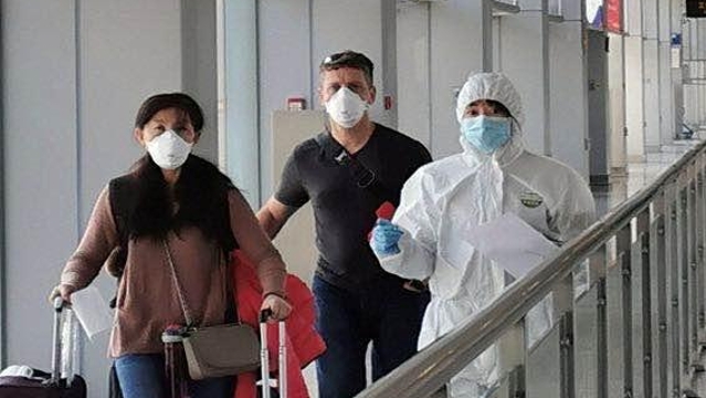 把好安全關(guān)。水務(wù)集團(tuán)工作人員正對(duì)出入萬(wàn)德大廈的人進(jìn)行登記和體溫檢測(cè)。