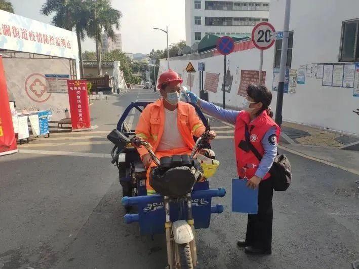 龔韻是龍華區(qū)衛(wèi)生監(jiān)督所衛(wèi)生監(jiān)督員,身軀嬌小的她,為加快速度,不讓司機(jī)下車(chē)耽誤時(shí)間,只好踮起腳跟,努力抬高身子,為司機(jī)測(cè)量體溫……