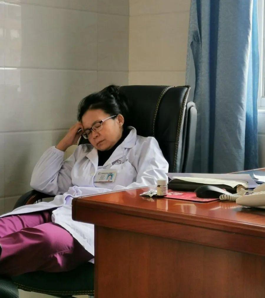龍華區(qū)人民醫(yī)院感染性疾病科主任姜春梅負(fù)責(zé)發(fā)熱門(mén)診,是此次防控“戰(zhàn)役”龍醫(yī)的前線(xiàn)指揮官,今年49歲的她曾參加2003年非典、2009年甲流的防控工作。疫情期間,身體抱恙的她一直在打針吃藥,但仍在盡心安排防疫工作,工作間隙吃完藥的她,就這么靠在椅子上瞇一會(huì)。