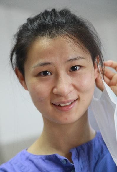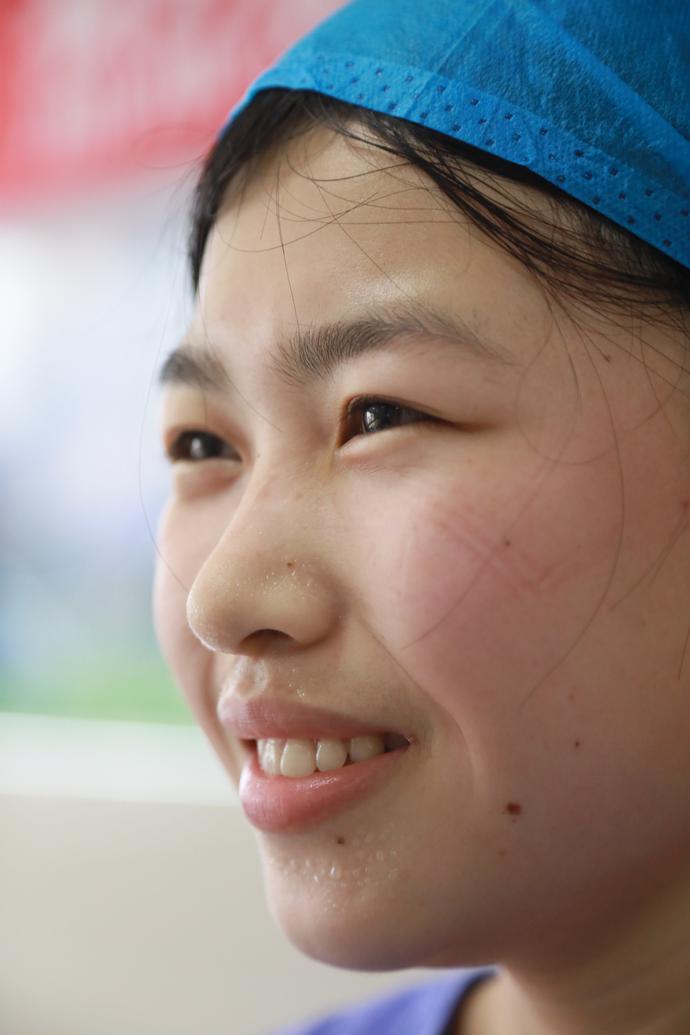 黃青青性格開朗,適應(yīng)能力強(qiáng),她平時(shí)不愛(ài)吃的胡蘿卜、包菜等食物,但到了一線再也不挑食了。身材瘦弱的她在忙碌十多天后有些消瘦,但她總是打趣道:“別看我瘦,力量可大著呢!”協(xié)助病人翻身,耐心為病人喂飯,只要病人需要的,她都會(huì)盡自己的全力做好,病區(qū)的病人也為她豎起大拇指。