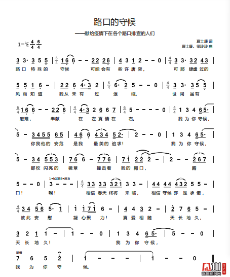 近日,龍崗區(qū)文化廣電旅游體育局職工夏士康、梁玲玲聯(lián)合北京自由音樂人劉珂銘創(chuàng)作的歌曲《路口的守候》正式推出?!奥房?,特殊的守候,可能會有些唐突,可那肆虐過的風(fēng)雨知道,我從未有過退縮……”該歌曲以抗疫一線實錄為背景,深情表達了對以“路口戰(zhàn)士”為代表的抗疫戰(zhàn)士們的敬愛之情,及眾志成城、抗疫必勝的堅定信念。