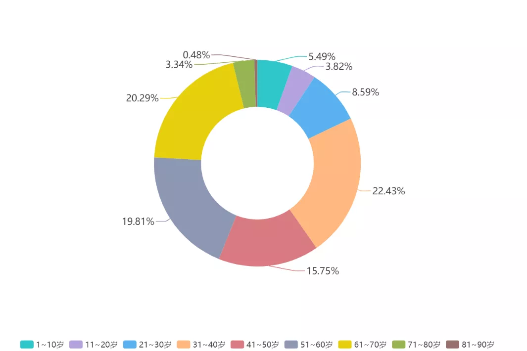 ▲新冠肺炎患者以中老年人為主,年齡在50歲以上的患者占到了總數(shù)的43.92%。但也應注意到,10歲以下的兒童確診人數(shù)達23人,青少年同樣存在感染風險。