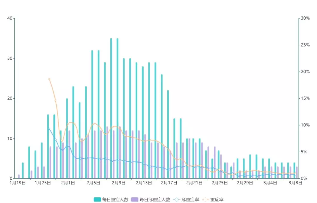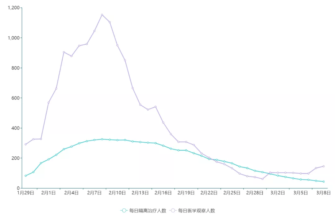 ▲2月7日起,每日新增確診病例數(shù)保持在較低水平。2月18日至3月5日,深圳僅新增兩例(均為境外輸入型病例)。這一方面是由于國內疫情發(fā)生地采取封閉措施后,輸入型病例不斷減少;另一方面基層疫情防控工作取得較好成效,病毒本地傳播被有效阻斷。