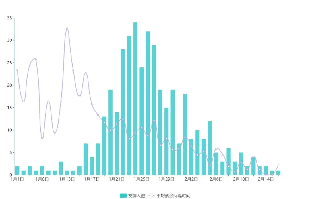 ▲1月20日后,患者發(fā)病及就診平均間隔時間有所減少,反映出社會各界對新冠肺炎警惕性及判斷力提高。