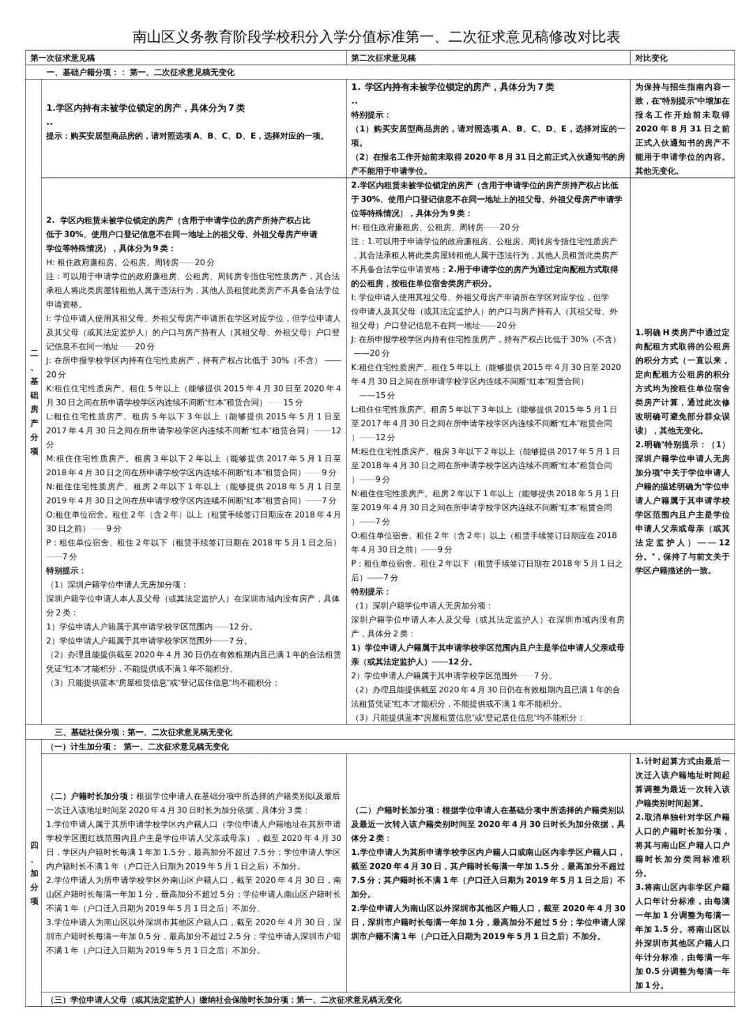 從積分的調(diào)整來看,變化最大的就是加分項,增加了“戶籍加分”和“社保時長加分”,只要是深戶,無論是學區(qū)內(nèi)、南山區(qū)、還是南山區(qū)外都可以加分;可見優(yōu)勢偏向于深圳戶籍。