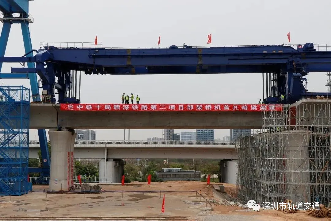 贛深鐵路10標(biāo)使用架橋機(jī)架設(shè)首榀箱梁圓滿完成