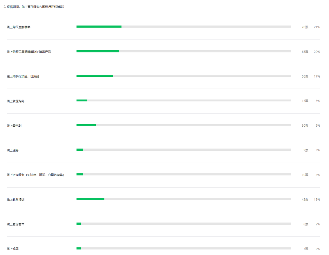 雖然有56%的市民表示對“在線消費”的商品質(zhì)量和服務(wù)評價滿意度下降,但是市民的原有生活習慣卻在潛移默化中改變了,超一半的市民表示喜歡“在線消費”,疫情結(jié)束后,會提高“在線消費”在日常開銷中的比例。特別是會加強生鮮蔬菜、口罩酒精、化妝日用品的購買頻率,也會更常使用網(wǎng)絡(luò)進行教育培訓、就醫(yī)購藥、法律咨詢、看房看車等。
