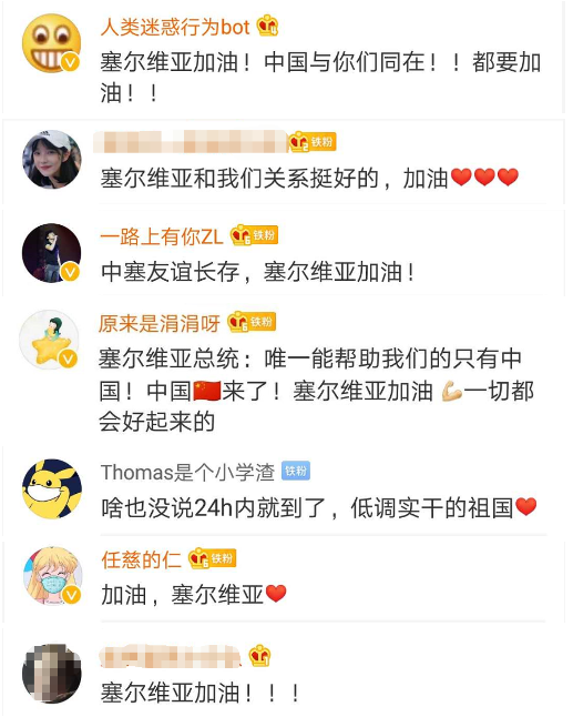 中國(guó)網(wǎng)友紛紛替塞爾維亞加油。
