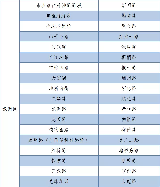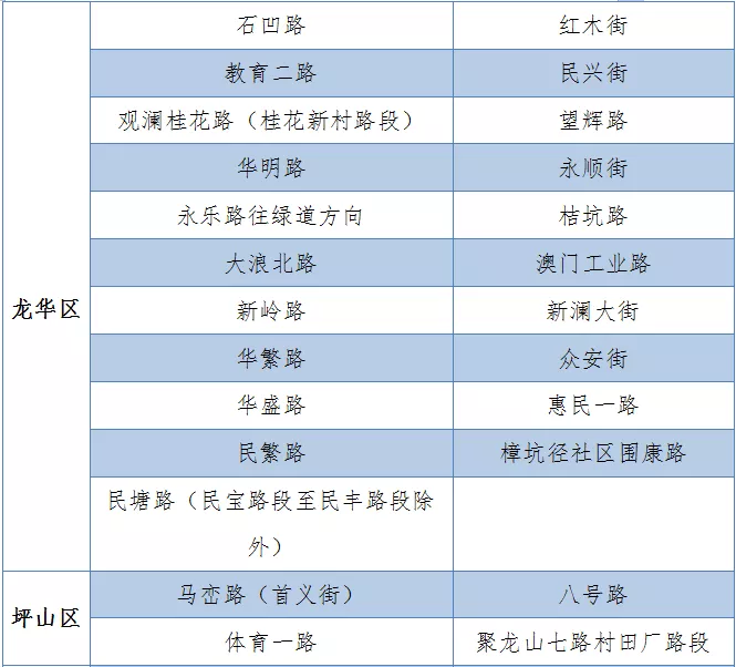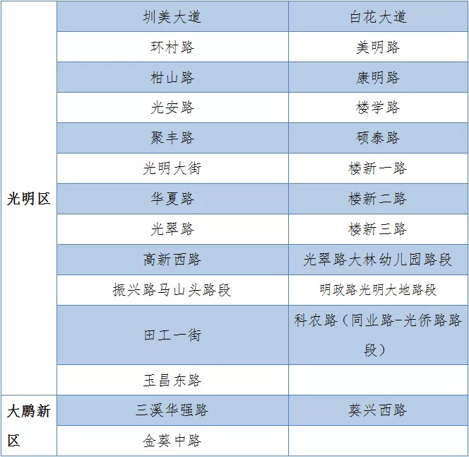 具體設(shè)置路段請(qǐng)看表格