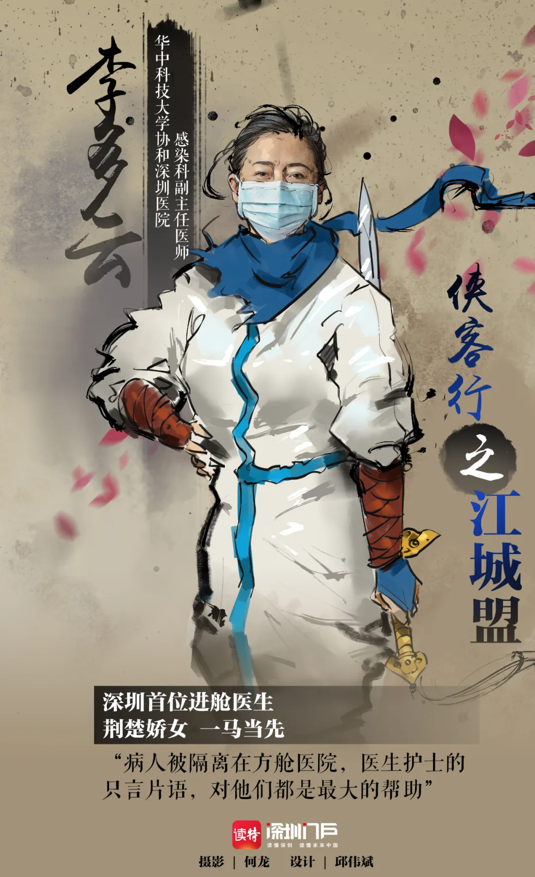 他們13位俠勇之士結(jié)盟成隊,來自深圳5家醫(yī)院(深圳市第二人民醫(yī)院和北大深圳醫(yī)院、市人民醫(yī)院、市中醫(yī)院、華中科技大學(xué)協(xié)和深圳醫(yī)院),2月9日首批出發(fā),征戰(zhàn)江城抗疫前線。