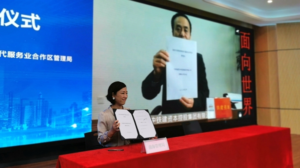 與以往不同,本次簽約儀式采用了現場簽約與視頻連線“云簽約”結合的特殊方式。前海管理局與中鐵建資本控股集團有限公司,與國研科工、彩虹魚,與北京大學匯豐商學院、劍橋大學嘉治商學院的合作采用了“云簽約”。