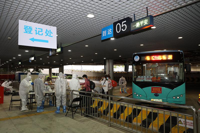 經(jīng)過升級改造后,分撥轉(zhuǎn)運(yùn)點由原5個巴士車位增加至15個巴士車位,其中1號至7號巴士站臺為入境旅客下車點,8號至15號巴士站臺為入境旅客登車點,實現(xiàn)出入分道。新增座位600個,同時拓寬登記區(qū)域面積,為旅客排隊、工作人員登記信息提供了更為寬敞的空間和更為明確的指引。