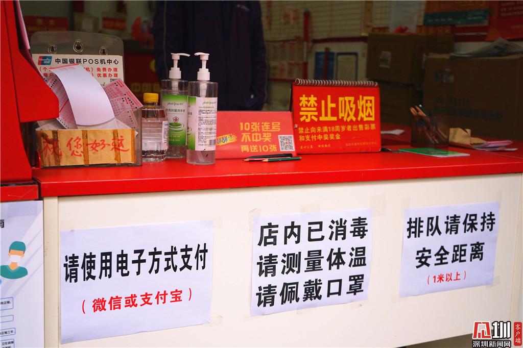 另一家在福田區(qū)華發(fā)北路,店號為83021044的投注站點(diǎn),門口已經(jīng)被店員用桌子堵上,并貼上了相關(guān)防疫告示,“之前深圳福彩中心的工作人員來檢查過,后續(xù)也會給我們配送一些防護(hù)物資?!庇浾咴诖擞^察了30分鐘,期間僅有兩位彩民前來,共購買了8元彩票。店主馬先生向記者介紹,“以前大家都會來店里邊坐,主要買的是20分鐘開兩次的‘快樂彩’,現(xiàn)在都不給進(jìn)來,那個彩票也暫停銷售了。”