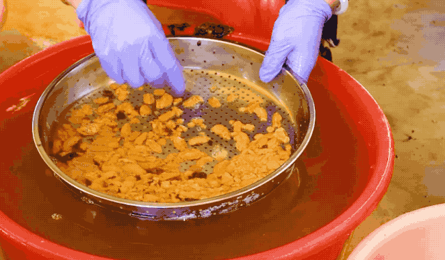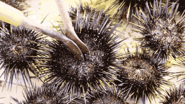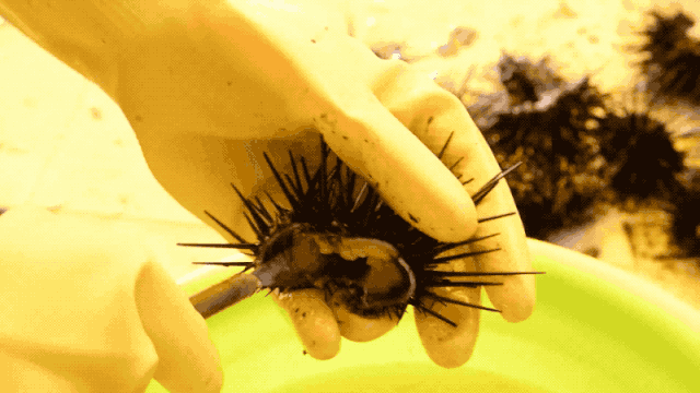 記者來(lái)到大鵬新區(qū)南澳海港路的潤(rùn)成海膽專(zhuān)賣(mài)店,看到工人們上下飛舞著鐵鉤“挖海膽”。南澳本地人口中所謂“挖海膽”就是海膽加工,打開(kāi)海膽殼,把海膽肉取出來(lái),然后用海水清洗干凈。從捕撈到上岸加工處理都必須一天之內(nèi)完成,只有嚴(yán)守時(shí)間的把控,爭(zhēng)分奪秒才配擁有鮮美和誘人的口感。