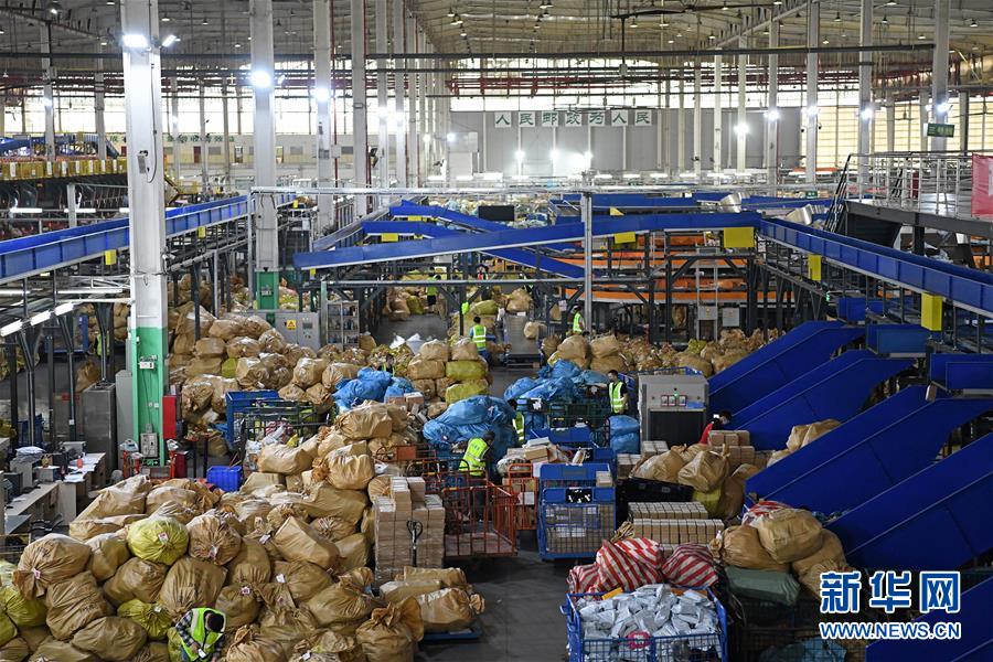 4月1日,在深圳郵件處理中心,工作人員在搬運(yùn)郵件。據(jù)深圳市郵政管理局介紹,春節(jié)以來(lái),深圳郵政快遞業(yè)累計(jì)向湖北運(yùn)送各類醫(yī)療、防疫物資超2萬(wàn)批次,累計(jì)為深圳市民配送防疫物資和生活必需品超過(guò)2.5億件,為防疫物資和群眾基本生活必需品送達(dá)提供了有力保障。新華社記者 梁旭 攝