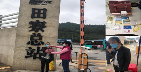 當(dāng)天下午,邱女士乘坐 M455線路公交車前往光明區(qū)文化館,途中她順手把包放在座位上,到站時下車匆忙居然忘了拿,等反應(yīng)過來,車早已開遠,車牌號也看不清了,這可把她急壞了。冷靜下來后,邱女士趕緊致電西部公汽客服求助??头藛T了解情況后,將其電話轉(zhuǎn)接到該公交車所在的田寮車隊。班車隊管理人員根據(jù)邱女士的描述,很快鎖定她乘坐的是由董健康師傅駕駛的牌號為粵 B40553D的車,便迅速讓 GPS監(jiān)控員關(guān)注車輛情況,聯(lián)絡(luò)司機董師傅留意車上是否有符合失主描述的手提包,確認(rèn)了包仍在座位上以后,及時反饋失主邱女士,安撫其焦慮情緒。