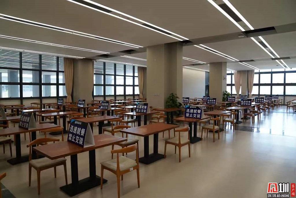 食堂就餐方面,深技大采取定點(diǎn)分時(shí)錯(cuò)峰供餐制,引導(dǎo)師生排隊(duì)候餐時(shí)保持1米以上距離。計(jì)劃配置幾款固定套餐在窗口供應(yīng),并設(shè)置盒飯售賣(mài)區(qū),師生可即取即走,以多種方式減少排隊(duì)選餐時(shí)間及用餐區(qū)人員聚集。食堂就餐區(qū)現(xiàn)已設(shè)置間隔標(biāo)識(shí),保證就餐距離,并配置了洗手液和消毒酒精等物品。開(kāi)學(xué)后,學(xué)生食堂實(shí)行單向出入,嚴(yán)格劃分出入路線,由北側(cè)門(mén)進(jìn)入、送餐具回收后從南側(cè)門(mén)離開(kāi),減少人員往返交叉。