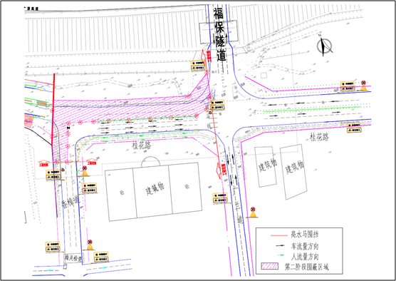 第一階段:對(duì)桂花路(福保隧道-香樟道段)南半幅(靠紅樹(shù)福苑側(cè))進(jìn)行封閉占用施工,北半幅臨時(shí)調(diào)整為三車(chē)道,一車(chē)道西行(進(jìn)保稅區(qū)方向),兩車(chē)道東行(出保稅區(qū)方向)。行人及非機(jī)動(dòng)車(chē)輛可通過(guò)現(xiàn)狀公園側(cè)人行道或紅樹(shù)福苑退線(xiàn)空間通行。自4月20日起,本階段預(yù)計(jì)持續(xù)施工60天。