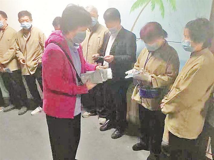 管理處給物業(yè)一線人員發(fā)放防疫物資。