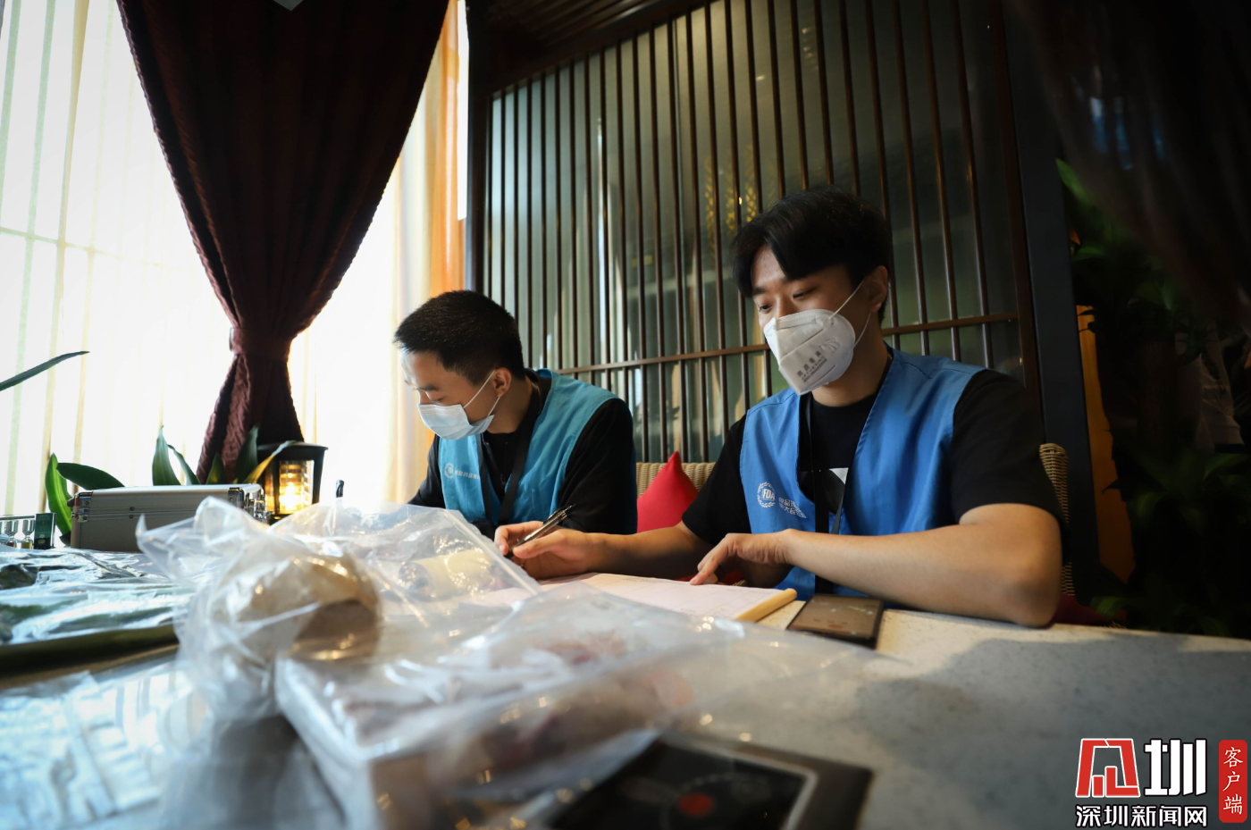 本次行動主要檢查餐飲單位復工復產(chǎn)、防疫防控以及日常食品安全管理措施是否落實到位,南山區(qū)人大代表和食品安全志愿者全程參與監(jiān)督執(zhí)法行動。當天,執(zhí)法人員分別就餐廳防疫物資準備、后廚衛(wèi)生情況、顧客分區(qū)就座等情況,查看兩家餐廳是否落實到位。并由專業(yè)檢測人員正在對餐廳的食材進行快速檢測。