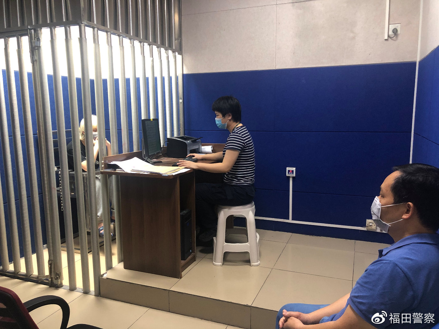 民警對(duì)嫌疑人進(jìn)行審訊