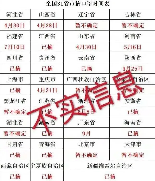 全國各地摘口罩時(shí)間表出爐?
