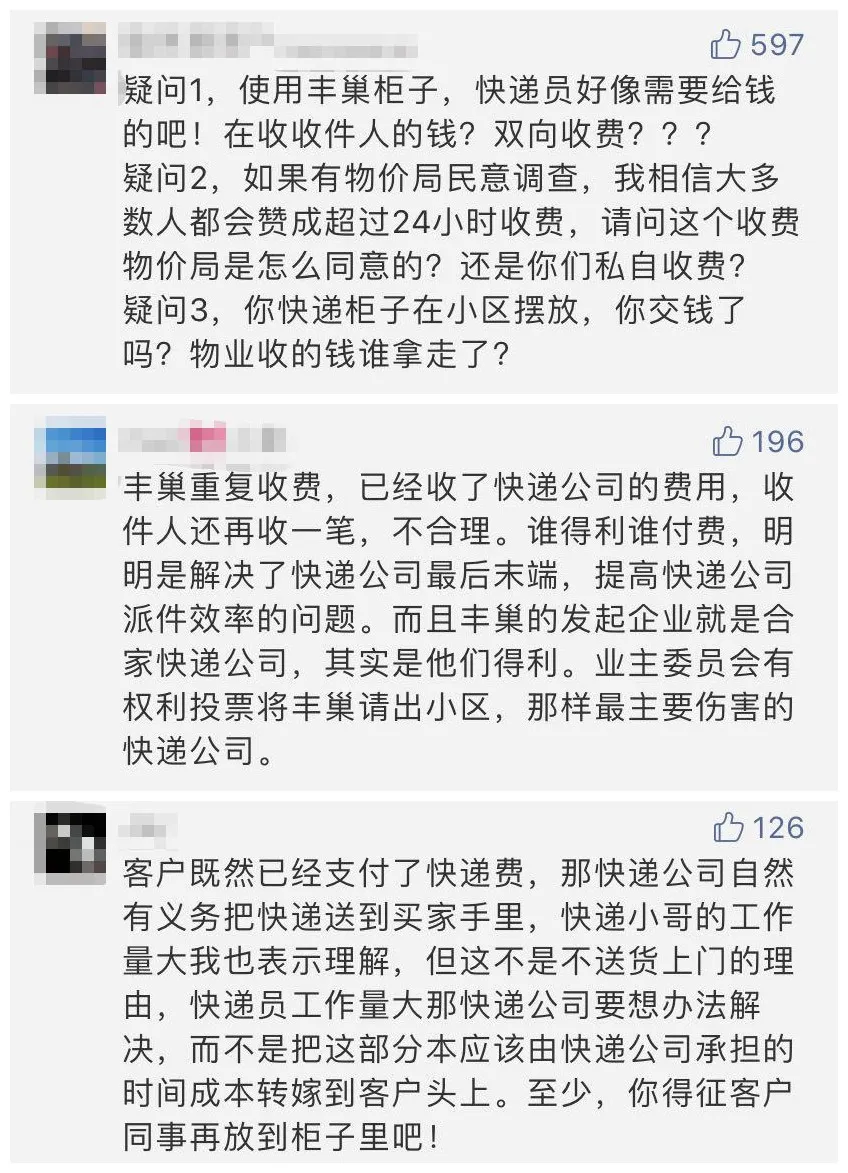 深廣電第一現(xiàn)場(chǎng)2020年5月1日訊 豐巢快遞柜“超時(shí)存放要收費(fèi)”的消息可謂“一石激起千層浪”,在我們的報(bào)道發(fā)出后,許多熱心市民紛紛在后臺(tái)留言,大家都很疑惑:這個(gè)錢(qián),真的得我們埋單嗎?快遞員、消費(fèi)者兩頭都收費(fèi),合理嗎?物業(yè)收取的快遞柜租金,又去哪了?