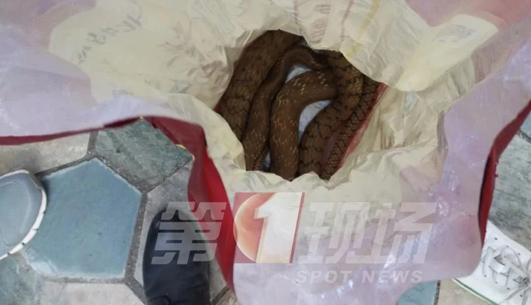 王先生:那個燈光不亮,沒有看到,開門的時候估計是碰到了吧,腳就被蛇咬了一下,像扎針一下的有點痛,當(dāng)時看到蛇是綠色的。