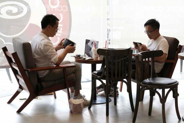 ▲不少市民選擇在商場(chǎng)吹空調(diào)休憩。