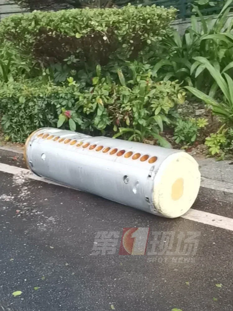 ▲掉落的太陽能熱水器儲水箱