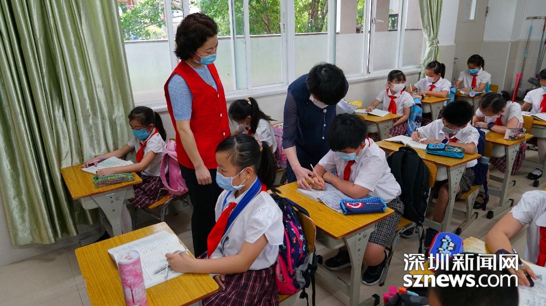 南山區(qū)委教育工委書記馬穎麗來到陽光小學(xué),了解學(xué)校的復(fù)學(xué)情況。在校領(lǐng)導(dǎo)的帶領(lǐng)下,馬書記參觀了食堂,并去到學(xué)校4-6年級(jí)的每一間教室,重點(diǎn)關(guān)注了孩子們?cè)诩疫M(jìn)行“空中課堂”的學(xué)習(xí)情況、復(fù)學(xué)第一天的心情感受、這段時(shí)間的心理狀態(tài)等;細(xì)微之處,馬書記還關(guān)注到了孩子的握筆姿勢(shì)、上課坐姿、書包重量等。在巡視過程中,馬書記對(duì)陽光小學(xué)的防疫環(huán)境創(chuàng)設(shè)、教室的良好通風(fēng)配置、走廊的定崗教師安排等細(xì)節(jié),也給予了肯定。