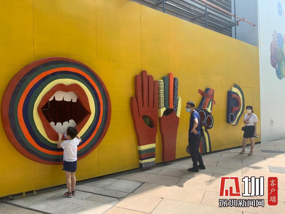 一家三口在網(wǎng)紅墻面拍照打卡。