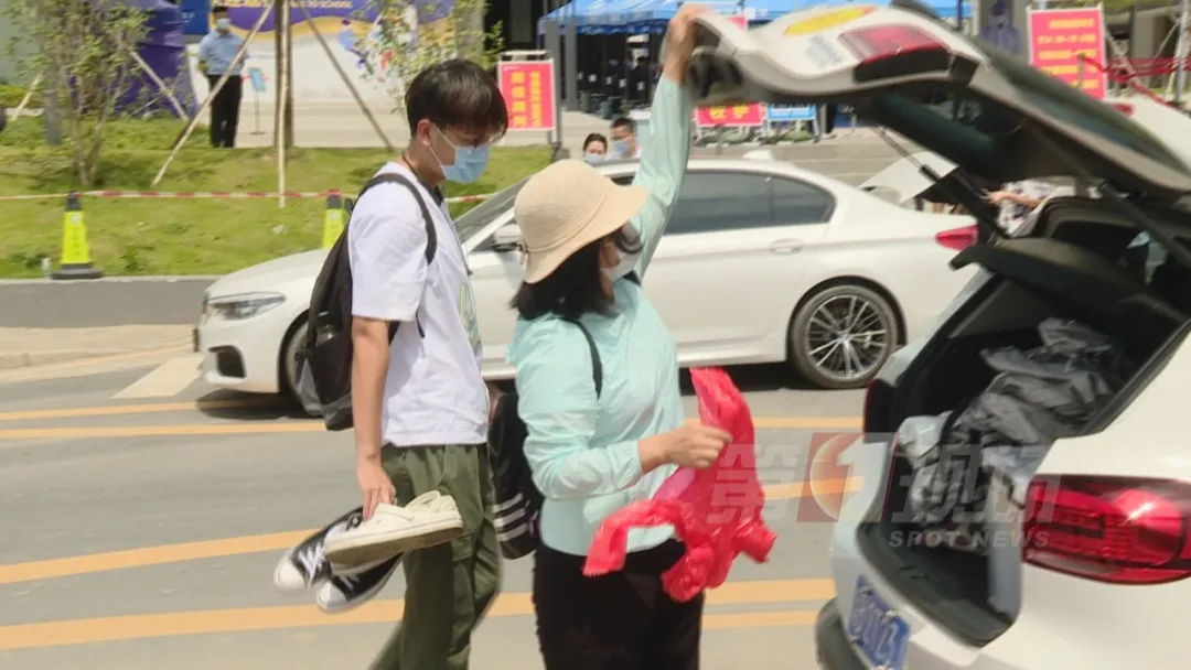 深圳技術(shù)大學(xué)位于坪山區(qū),離市區(qū)較遠(yuǎn),本地生多是乘坐私家車前來。讀大二的冼晨浩是一名本地生,家住寶安,今天上午,他的媽媽開車把他送到學(xué)校。這大包小包的,兩人從車上拿下來不少行李。