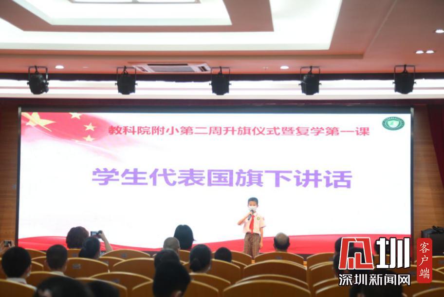 升旗儀式中教科院附小學子肅立、敬禮,眼底盛滿了崇敬與憧憬。隨后,蔡銳琛同學代表全體少先隊員國旗下講話,他分享了如何做好個人防護,如何行動踐行“從小學先鋒,長大做先鋒”的美好愿望。