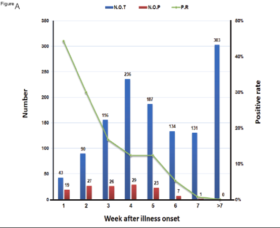患者糞便中 SARS-CoV-2在病程不同時間(周)的檢測情況。