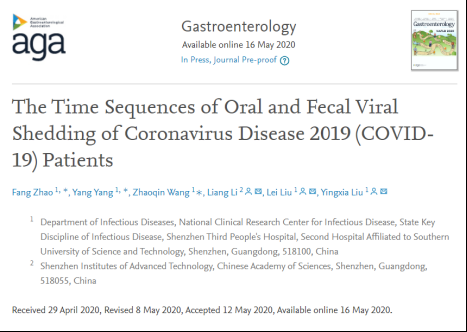 見圳客戶端·深圳新聞網(wǎng)2020年5月20日訊(深圳特區(qū)報記者 戴曉蓉 通訊員 深三院)國際知名醫(yī)學(xué)雜志“胃腸病學(xué)(Gastroenterology)”于5月16日在線重磅推出了深圳市第三人醫(yī)院(深圳三院)關(guān)于新冠肺炎患者腸道排毒特征及規(guī)律的研究論文《The Time Sequences of Oral and Fecal Viral Shedding of Coronavirus Disease2019(COVID-19) Patients》。該雜志的學(xué)術(shù)影響力在胃腸病學(xué)和肝病專業(yè)領(lǐng)域排名第一。