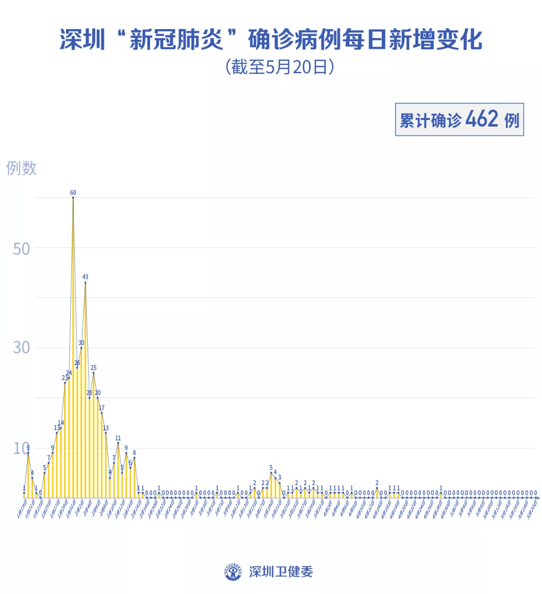 截至5月20日24時,深圳累計報告新冠肺炎病例462例。
