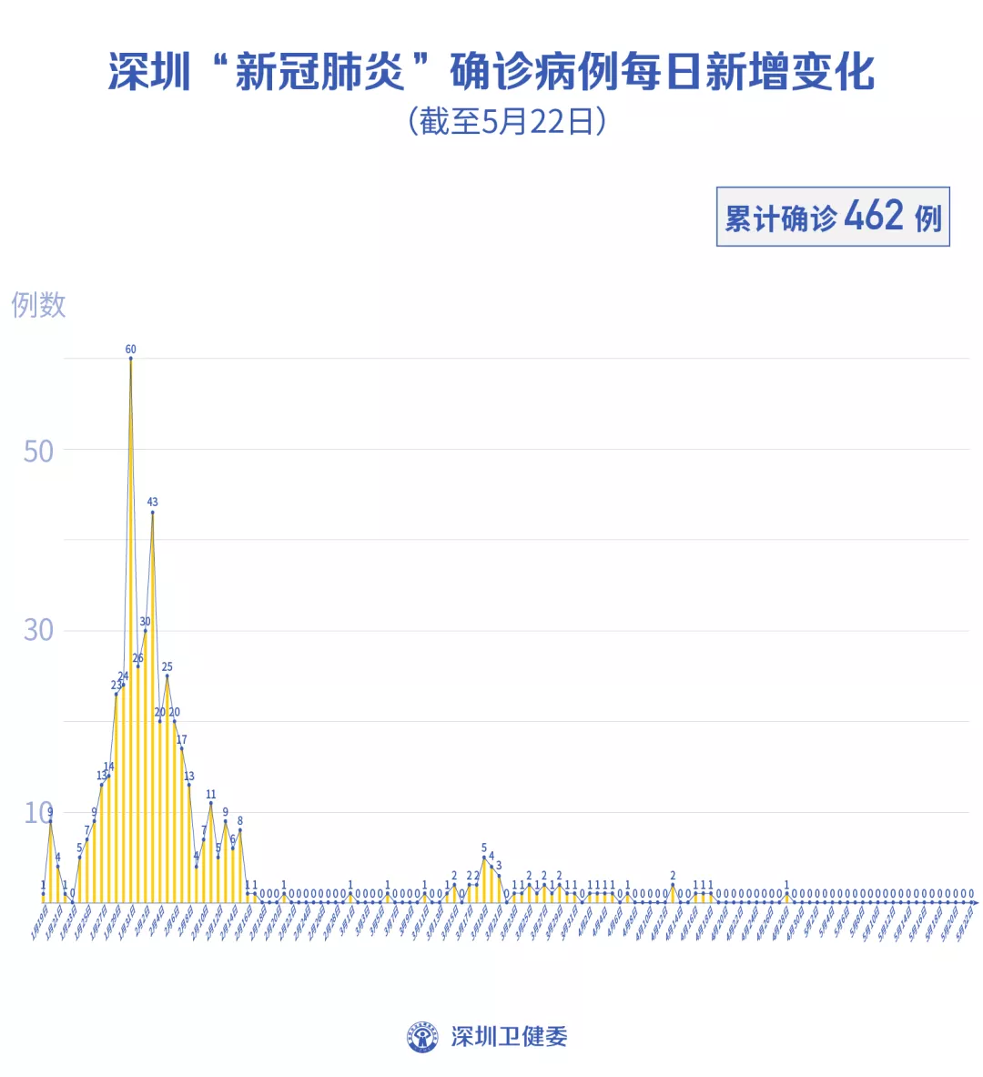 截至5月22日24時,深圳累計報告新冠肺炎病例462例。
