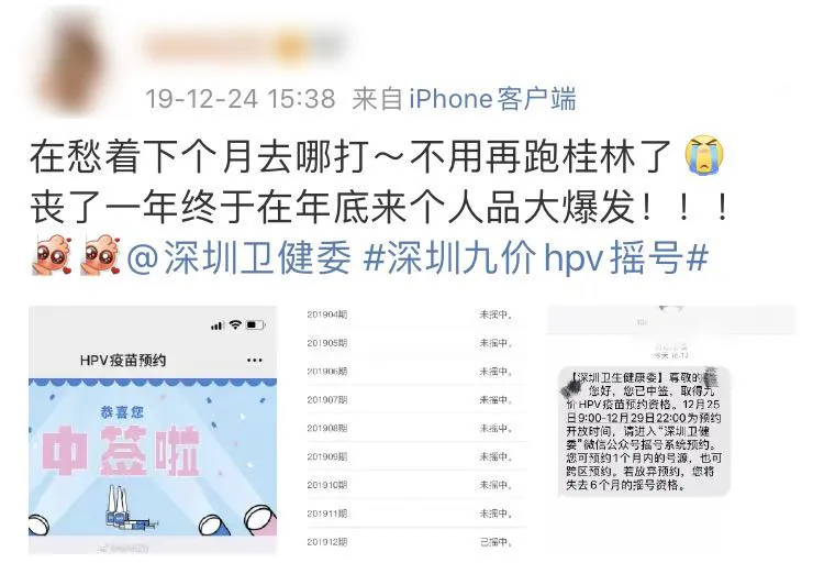 “嗚嗚嗚……簡直不敢相信我的眼睛,前段時間連口罩都抽不中的我,竟然抽中了九價HPV疫苗”。