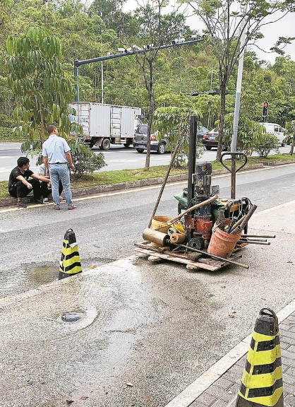 2020年5月1日,執(zhí)法支隊(duì)龍崗大隊(duì)執(zhí)法人員在轄區(qū)內(nèi)值班巡查時(shí),接到投訴稱愛南路上海外國語學(xué)校門口有道路施工人員鉆探時(shí)鉆破水管,現(xiàn)場水流滿地,請(qǐng)求執(zhí)法人員前往調(diào)查。