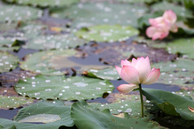 ▲雨后荷塘里荷花盛開 , 在一片碧綠中顯得格外嬌艷。