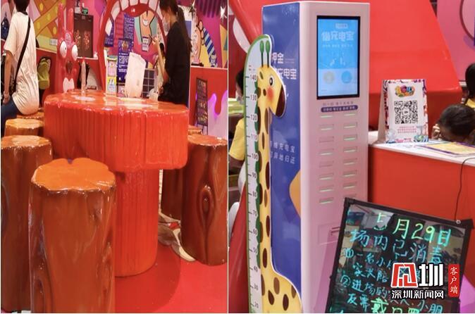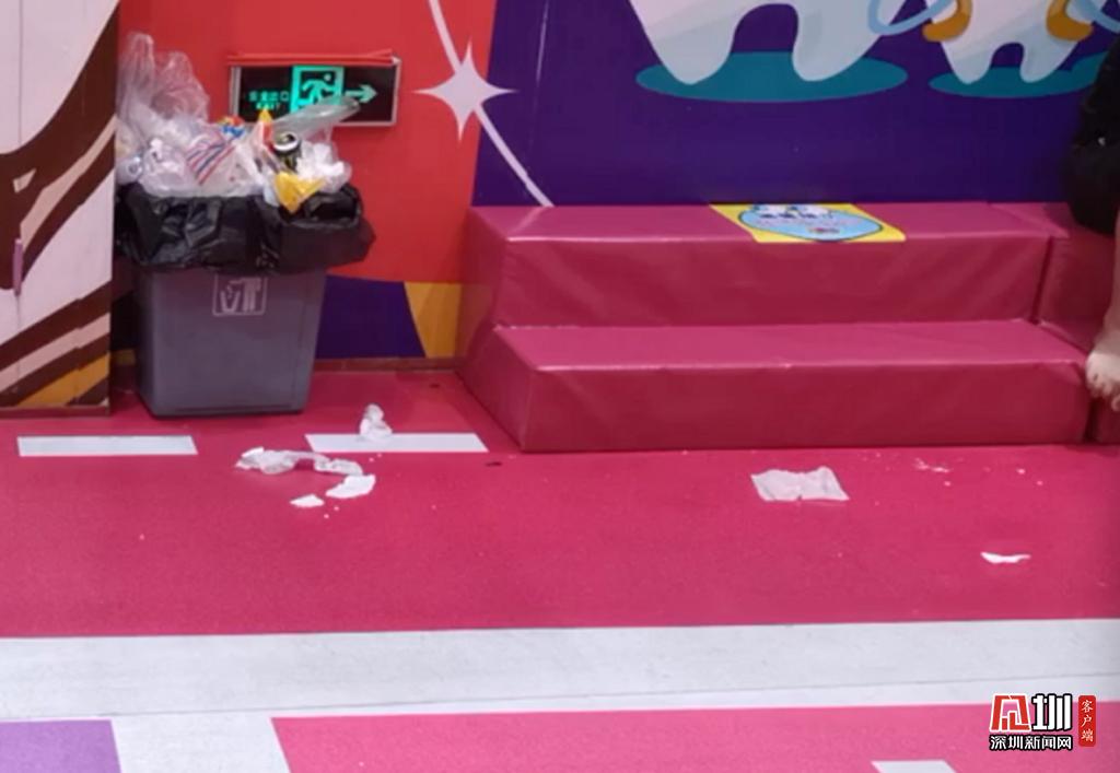 游樂(lè)場(chǎng)有家長(zhǎng)休息區(qū),在前臺(tái)還有充電寶租借。但是記者注意到,在休息區(qū)角落不少垃圾散落在地面,垃圾桶裝滿了工作人員也沒(méi)有及時(shí)過(guò)來(lái)清理。
