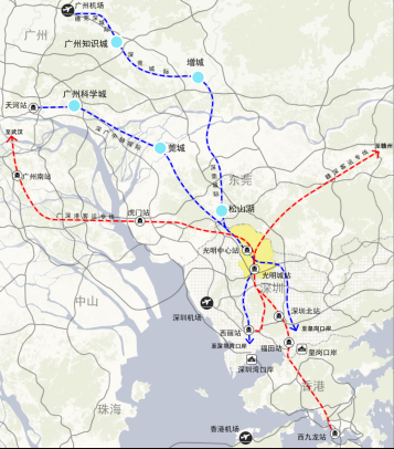 光明科學(xué)城區(qū)域聯(lián)系示意圖