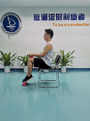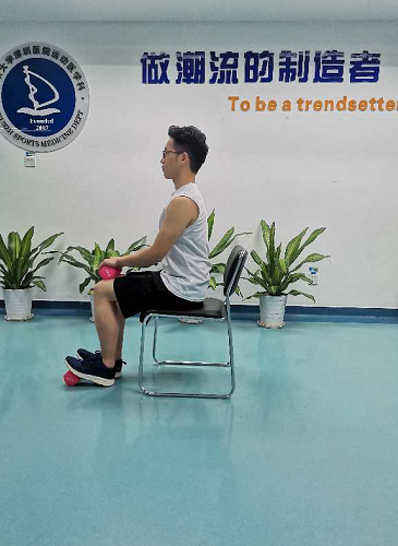 坐姿提踵,坐在椅子上,大腿平行于地面,小腿垂直于大腿,前腳掌置于有一定高度的墊片上,雙手持一合適的重物于膝蓋上;小腿發(fā)力慢抬至最高點保持3秒鐘后慢放至最低點保持3秒鐘,此動作重復30次-50/次×3-5組。