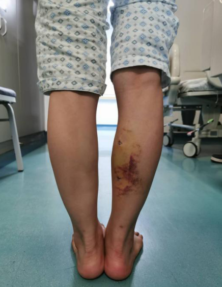 20歲出頭的楊柳(化名)右小腿注射肉毒素后發(fā)生肌肉攣縮,導致右足跟不能著地,雙下肢不等長,跛行。