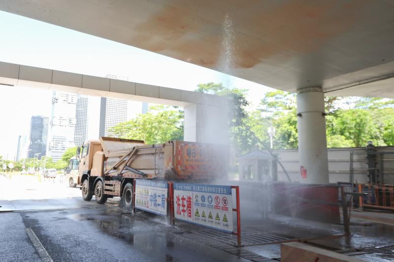 相信很多市民朋友對自卸車(俗稱“泥頭車”)的印象就是又吵又臟,對此記者在現(xiàn)場看到,福田區(qū)的工地已經(jīng)用上電動自卸車,跟燒柴油的自卸車相比,不僅節(jié)能環(huán)保,且車子運(yùn)行的噪音也非常小。不僅如此,為了防止自卸車“帶泥上路”,工地的出口處還設(shè)有車輛自動沖洗系統(tǒng),每輛泥頭車在駛出工地之前,都要經(jīng)歷一次“全身淋浴”,徹底沖干凈車身以及輪胎上的泥土之后才能離開。