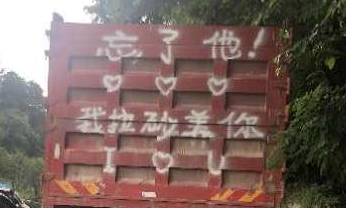 近日,貴陽(yáng)一30歲貨車(chē)司機(jī)為了表達(dá)妻子和自己一起拉砂相濡以沫的感情,趁著十五天的臨牌期,效仿網(wǎng)絡(luò)短視頻,用白色自噴漆在車(chē)身上噴涂了“忘了他,我拉砂養(yǎng)你”的標(biāo)語(yǔ)。